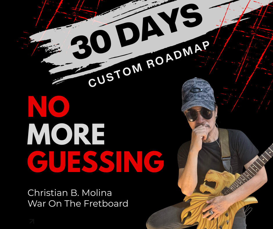 Stop guessing and feeling stuck—turn confusion into War On The Fretboard™ clarity.In 30 days, I'll personally guide beginners, early intermediates, and curious improvisers through a clear, step-by-step roadmap.With War On The Fretboard™ Mapping System, your fretboard—scales, chords, licks, riffs—will finally connect letting you play with confidence and creativity and make everyone ask, "How did you do that?"
