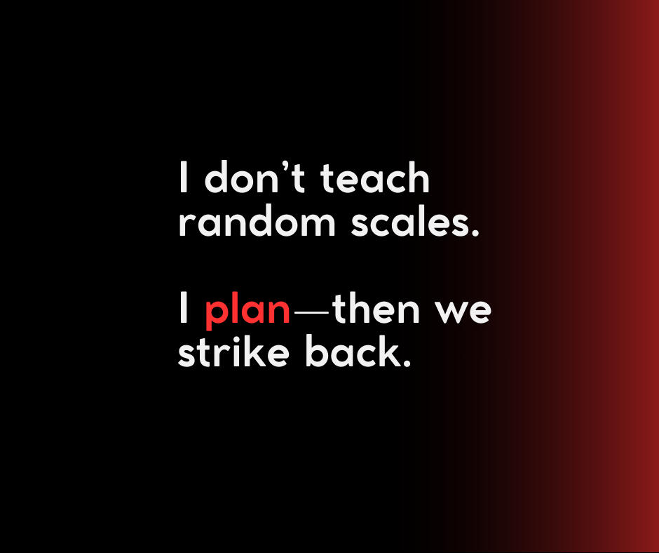 I don’t teach random scales.I help you understand the fretboard as a connected system.As I always say:“I plan—then we strike back.”